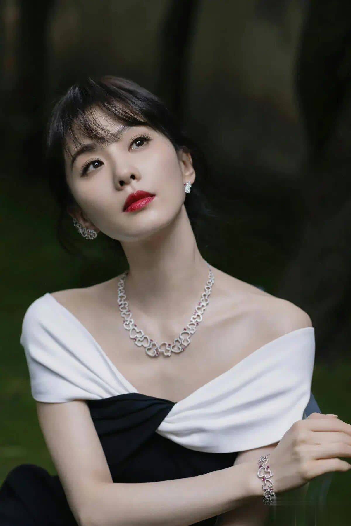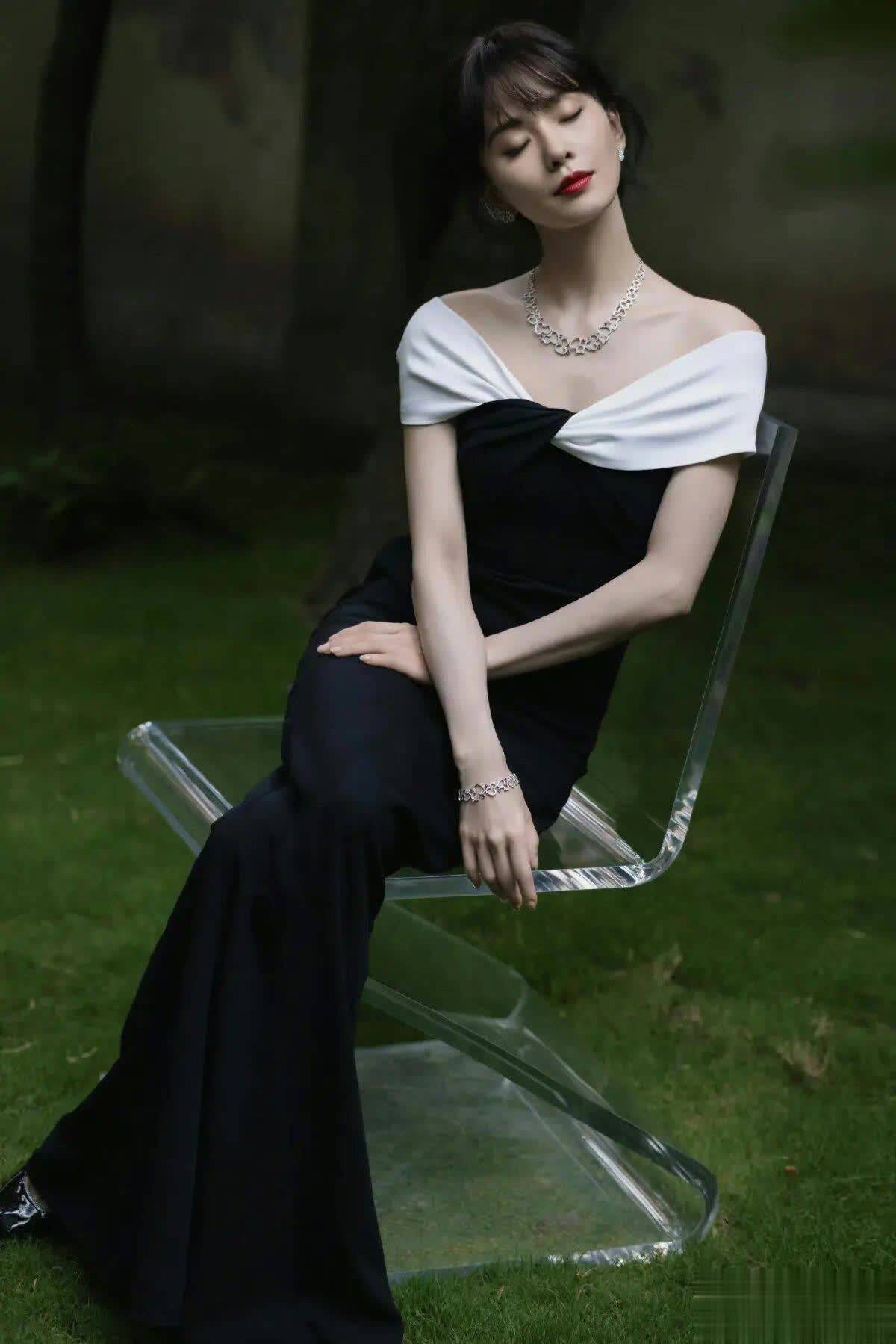 这款钻石项链堪称整体造型的点睛之笔。它让刘诗诗的颈部线条更显修长,也为简约的黑白连衣裙增添了奢华感。